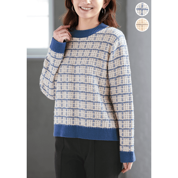 チェック柄ニットプルオーバー