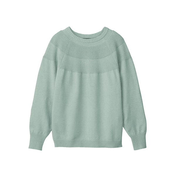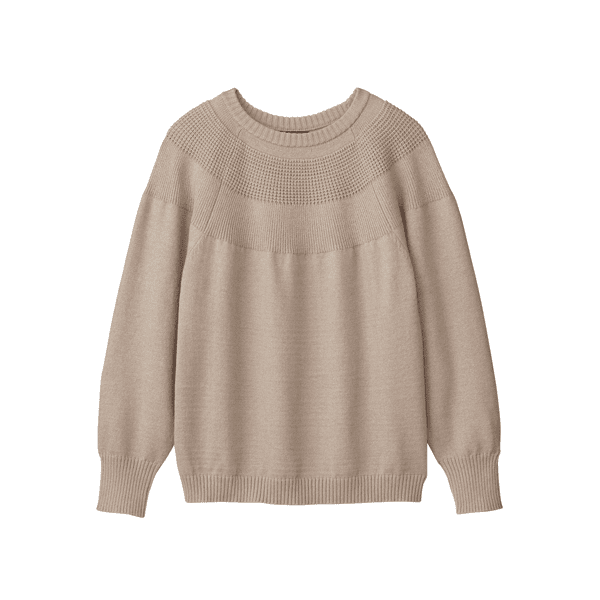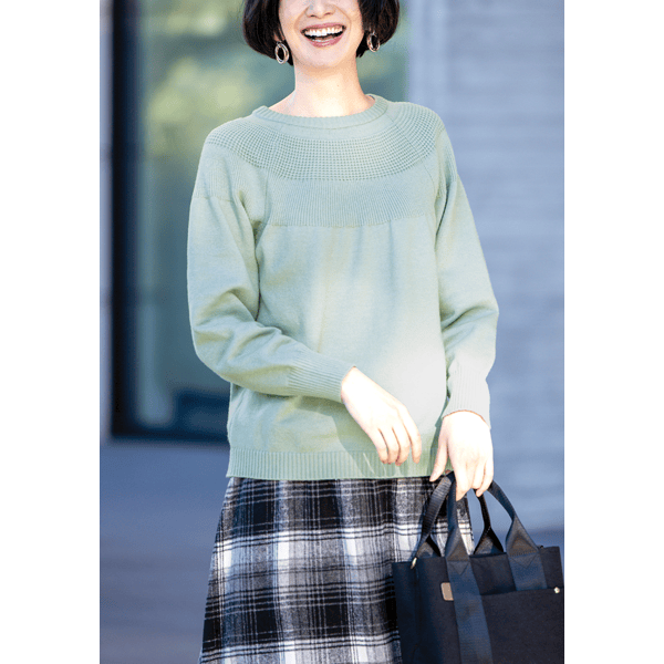チクチク感がなくふっくらとしてあたたかな、軽い着心地の求心柄ミドルゲージニット。ゆとりのあるサイズ感と長すぎないほどよい丈感で、春まで着られるキレイ色ニットです。
