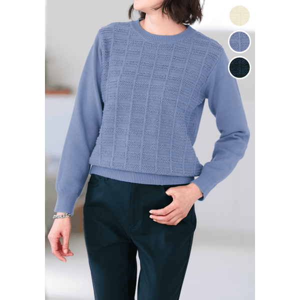 吸湿発熱機能付きであったか♪チェック柄の編み地が華やかなニット