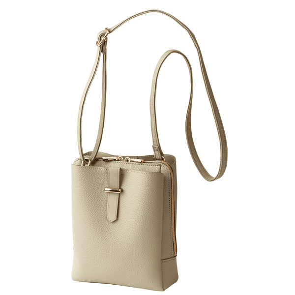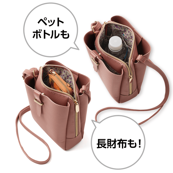 3層式で、貴重品とさっと出したいものが分けてしまえる使い勝手抜群のショルダー。軽くて持ちやすく、シンプルなのでどんなコーデにも似合います。長財布やペットボトルもすっぽり。
