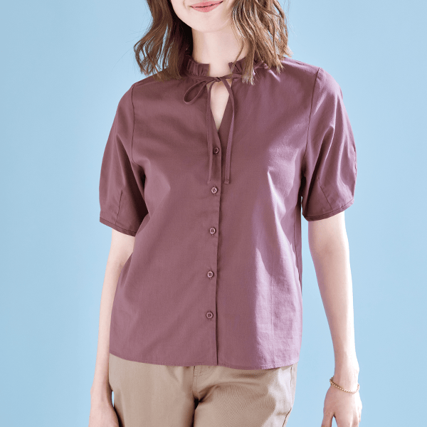 デコルテがすっきり見えるオーガニックコットン100%のフェミニンブラウス
