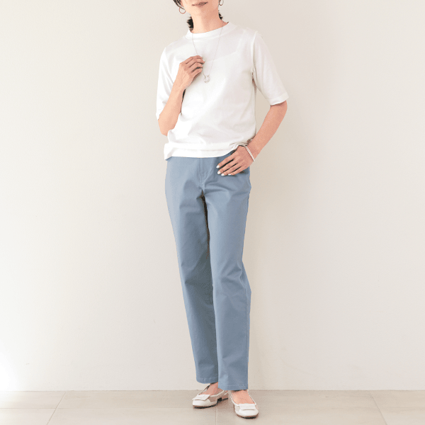 オーガニックコットン使用!美シルエットではき心地さわやかなツイルパンツ