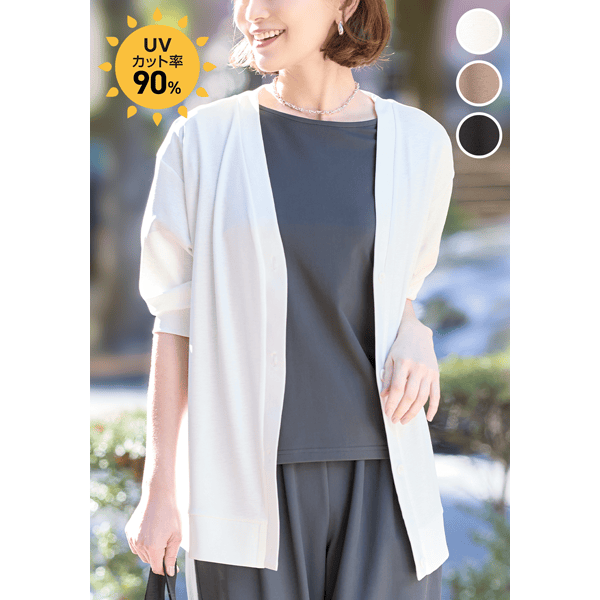 UVカット・保湿機能付き!ヒップが隠れる長め丈のさらさらカーデ