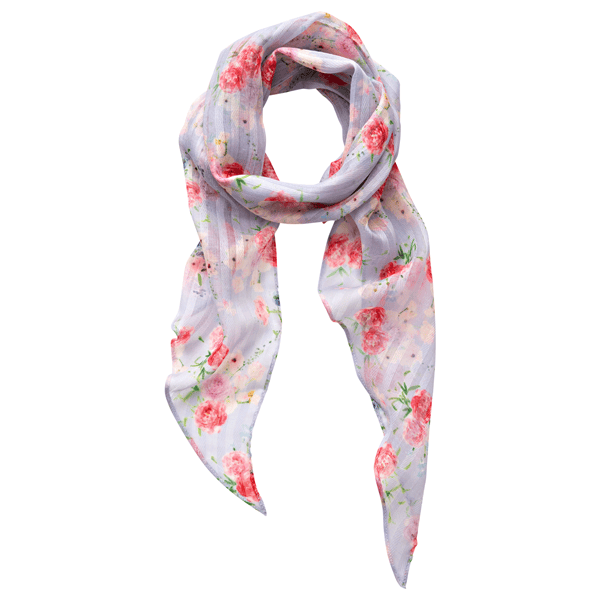 「日比谷花壇」とDHCのコラボ!軽やかに首元を華やげるストールです。透け感のあるドビーストライプの生地に、繊細なフラワー柄をプリントしました。