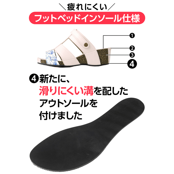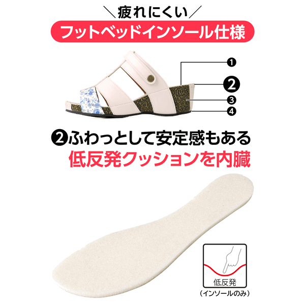 - 仕様/かかと2WAY 低反発フットベッドインソール(取り外し不可) 底材の製法:セメント式