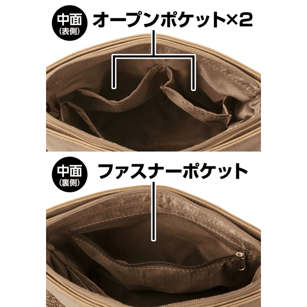- 仕様/開閉:ファスナー式 ショルダー:長さ調節可・取り外し不可 中面:片面あおりポケット・オープンポケット×2 ・ファスナーポケット・ボトルホルダー×2