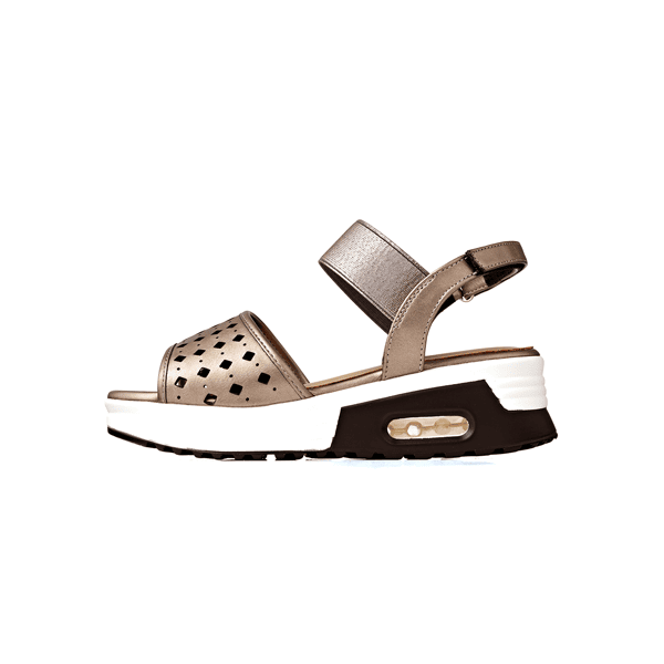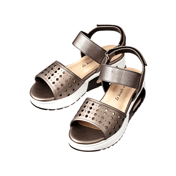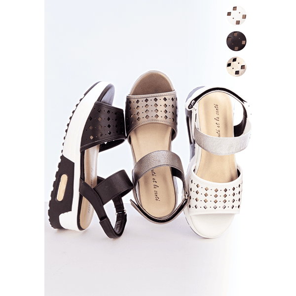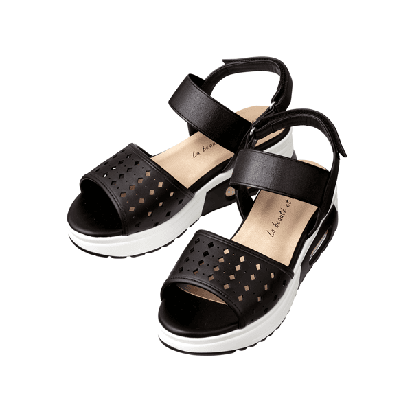 衝撃を緩和する大人気「エアークッションソール」の、大人デザインサンダルが復活。ダイヤ模様のカットワークで、涼しげで上品な印象です。疲れにくいのも◎。