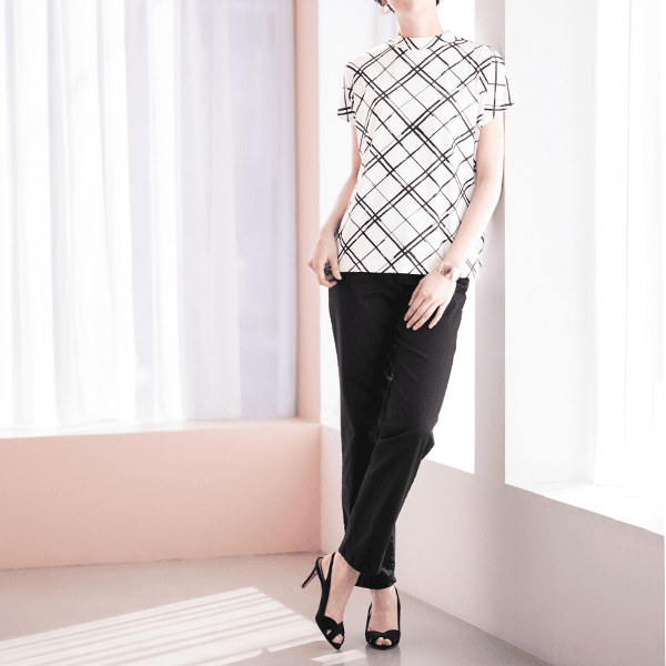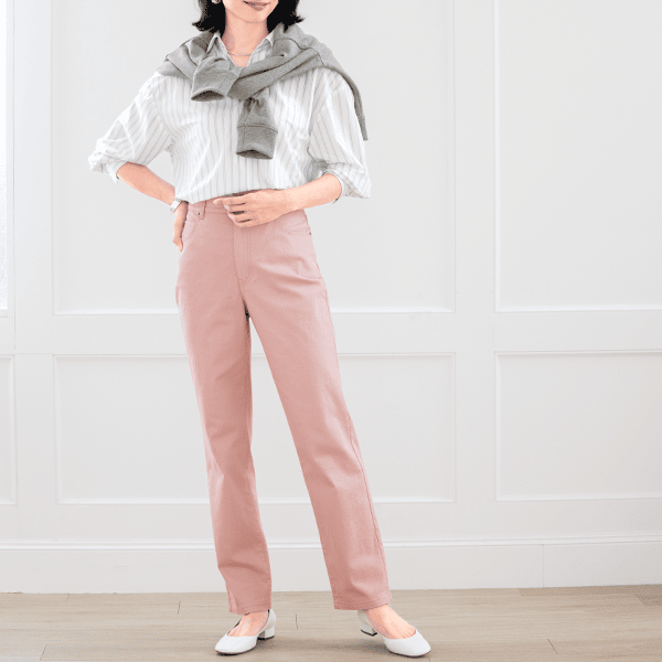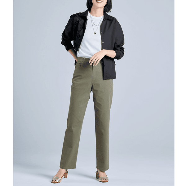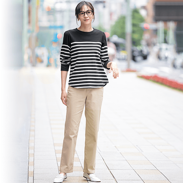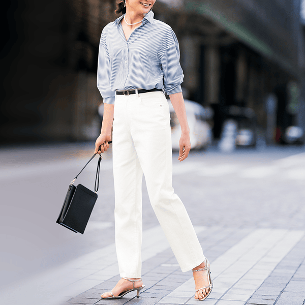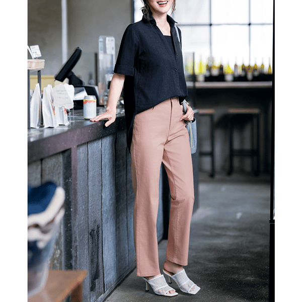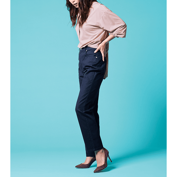 ファスナーあきの満足仕様!脚をきれいに魅せる計算されたストレートパンツ