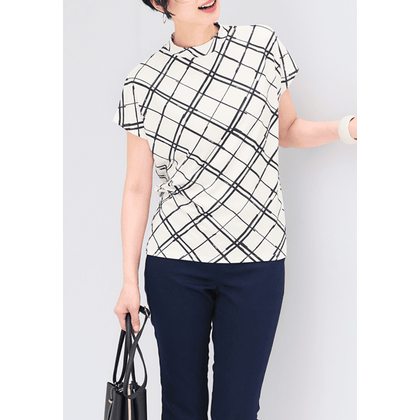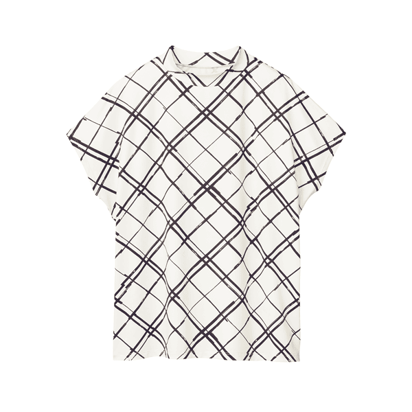 なめらかな肌ざわりでドレープ感と伸縮性のある薄めのジャージー素材。夏にうれしいUVカット、速乾機能付き。ボディラインをカバーする、ほどよくゆとりのあるシルエットが大人の余裕を醸します。