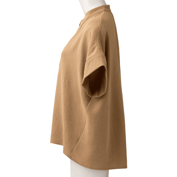 軽くてラクな着心地なのに、大人の女性にふさわしいきちんと感を醸すさらさらブラウス。体型をカバーするゆったりとしたラインで涼やかな印象です。
