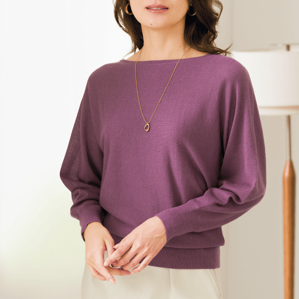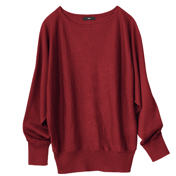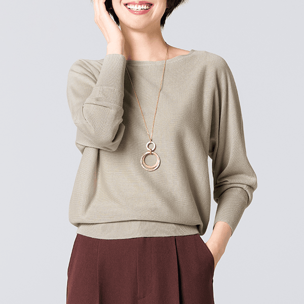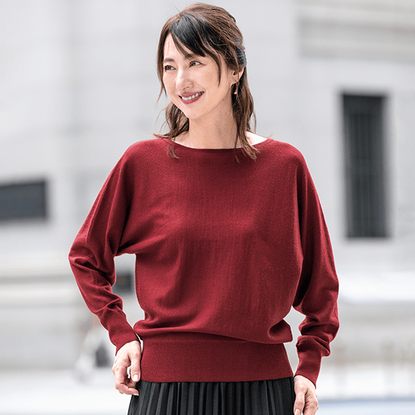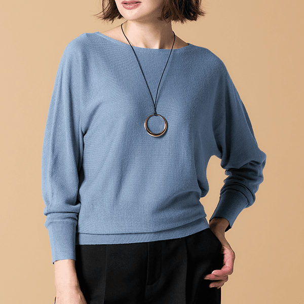 お手入れラク♪上質なイタリア糸を使用した華奢見えドルマンニット