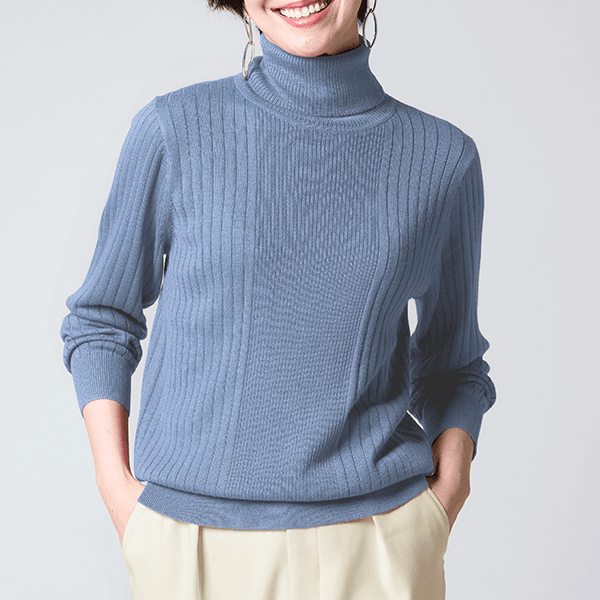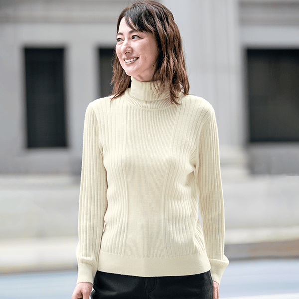 お手入れラク♪上質なイタリア糸を使用した細見えタートルニット