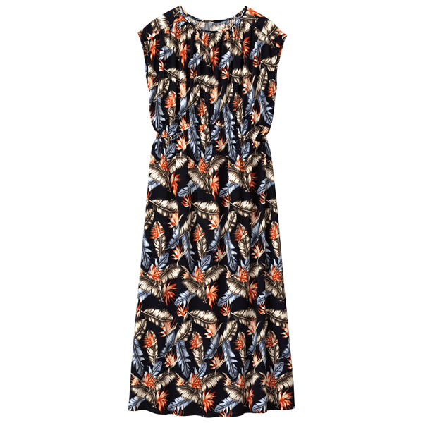 涼しくて着心地ラク♪イージーケアでスタイルアップもかなうプリントワンピ