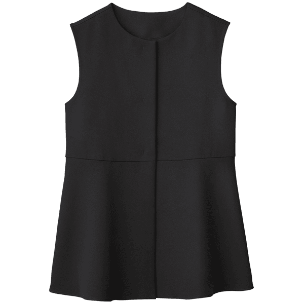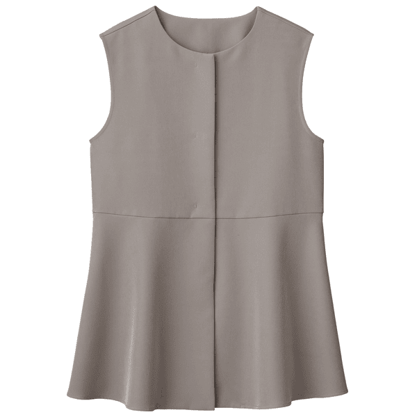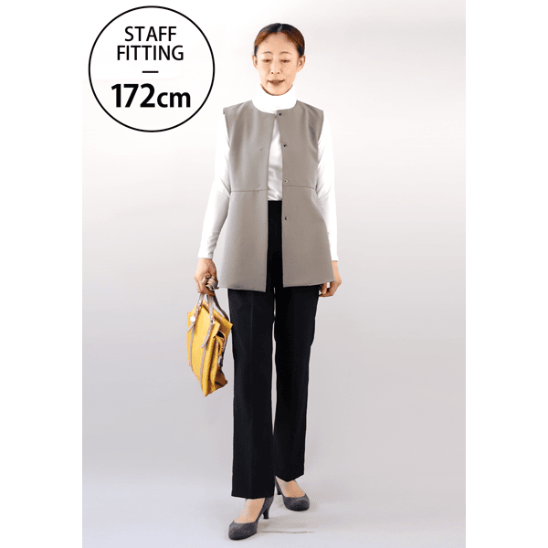 メリハリのあるシルエットでスタイルアップがかなうジレ。シワになりにくく洗濯機で洗えるイージーケアがうれしいです。