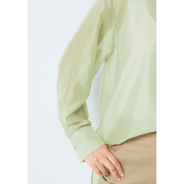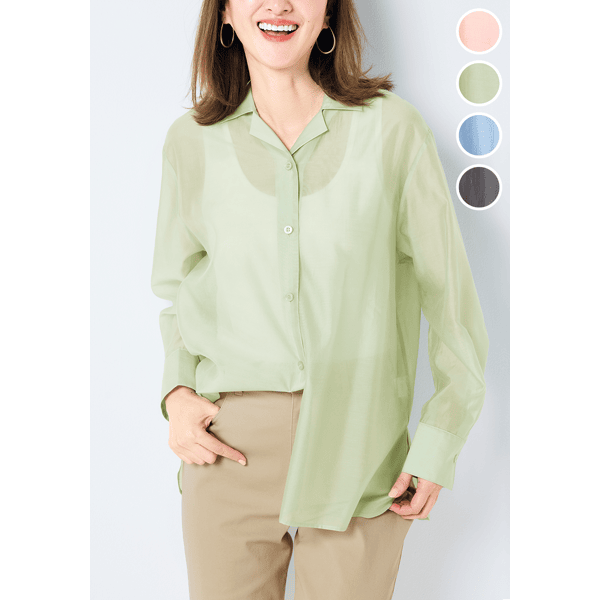 上品に着こなせる透け感!ふわっと身体のラインをカバーするシアーシャツ