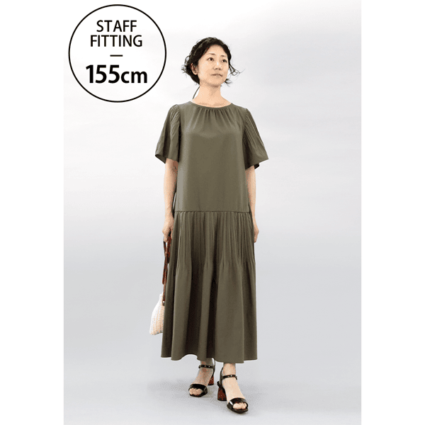 真夏はムシムシして、着るものにも困りますよね。それでも、おしゃれを楽しみたいから涼しくて品よく華やぐワンピースを作りました。ベルトは自由に付け外し可能で、かんたんに印象を変えられます。軽量でベタつかず、サラサラしているのも特長。消しプリーツのデザインをふんだんに使い、気になる体型もさりげなく隠します。