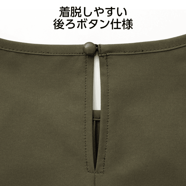 - 仕様/後ろ:衿ぐりスリットあき(上端ボタン) ウエストベルト付き