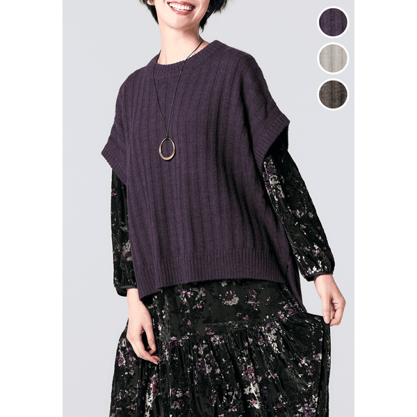 イタリア糸・重ね着を楽しめるニットベスト(ジーティービー)