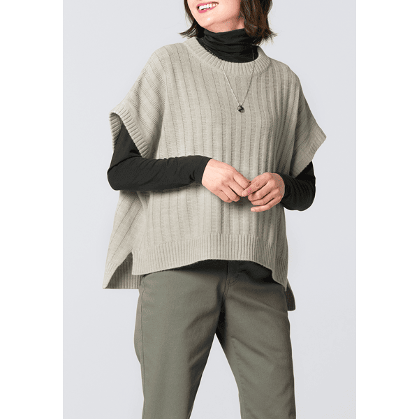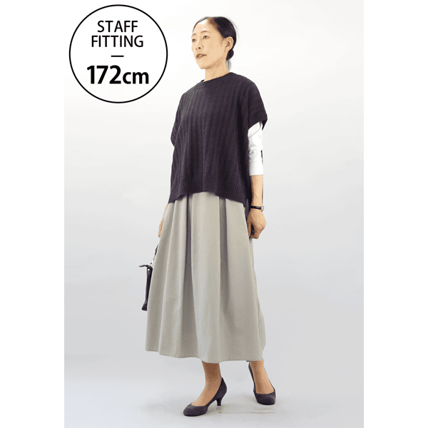 ふんわりしたシルエットがボディラインをカバーする大きめニット。ストンと被るだけで1枚でも重ね着でも活躍します。