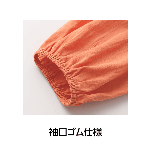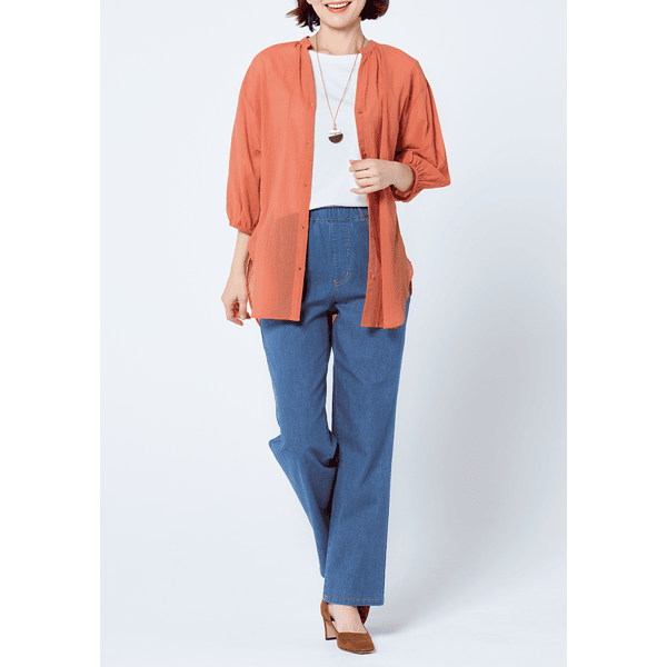 リラックス感があって軽くて涼しげなシャツです。袖口がゴムでサッと腕まくりできるので室内と屋外の寒暖差対策にも活躍しそうです。9号でもかなりゆとりがあります。ラクに心地よく過ごしたいときにぴったりです。