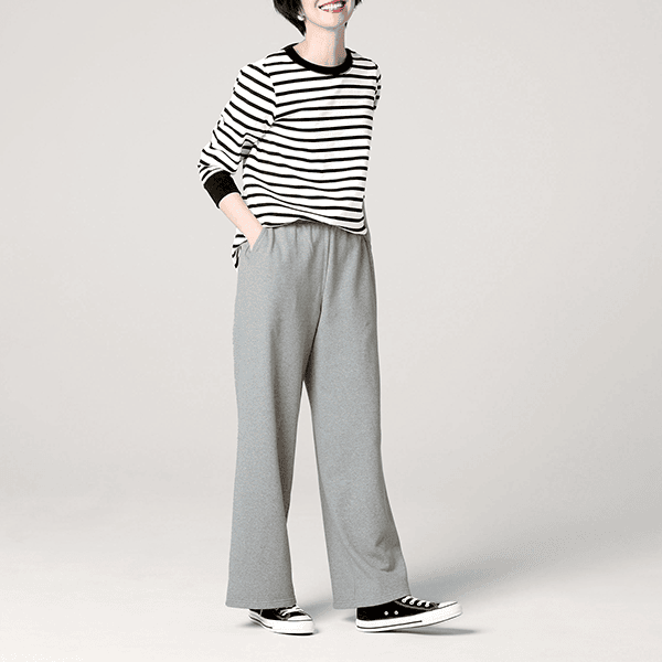 綿100%のしっかり生地できれい見え♪下半身をカバーするワイドパンツ