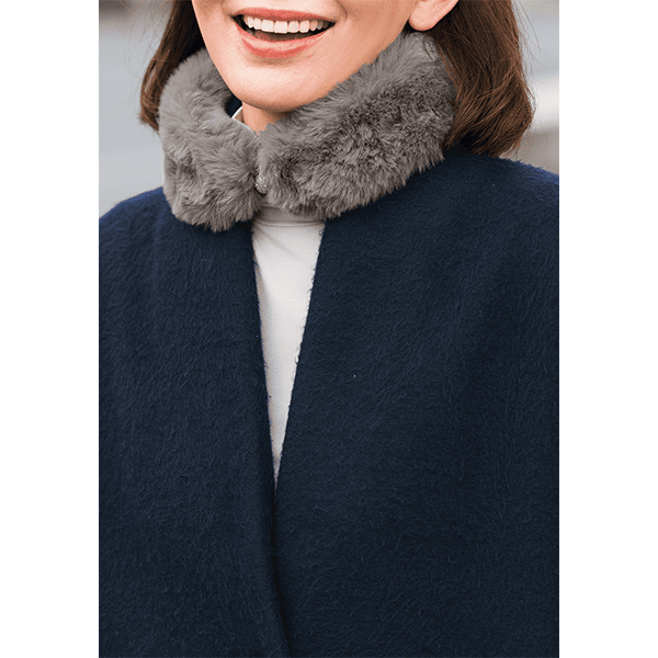 ふわふわのファーで顔まわり華やか!マグネット留めでかんたん装着できる衿風のミニマフラー。アウターだけでなくニットやブラウスともあわせやすく、外した時も収納しやすいコンパクトサイズ。