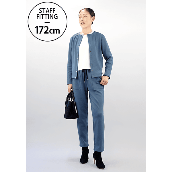 - 素材/【ブラック、グレージュ、スモーキーブルー、ライラック、スモーキーグリーン】ポリエステル80% 綿15% ポリウレタン5% 【オートミール、インディゴ、イエロー】ポリエステル65% 綿30% ポリウレタン5%