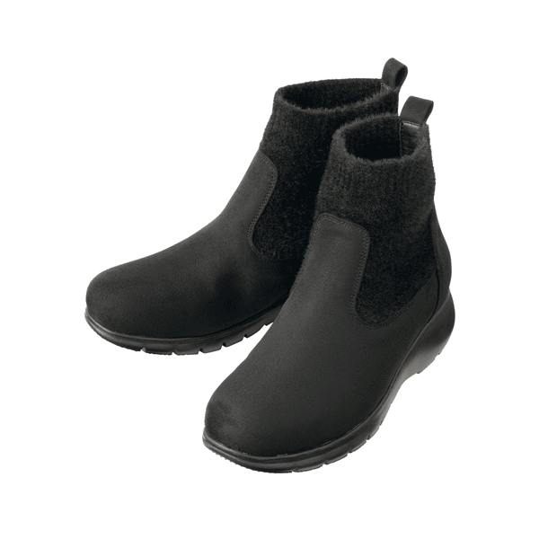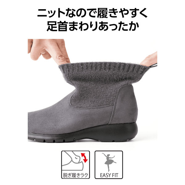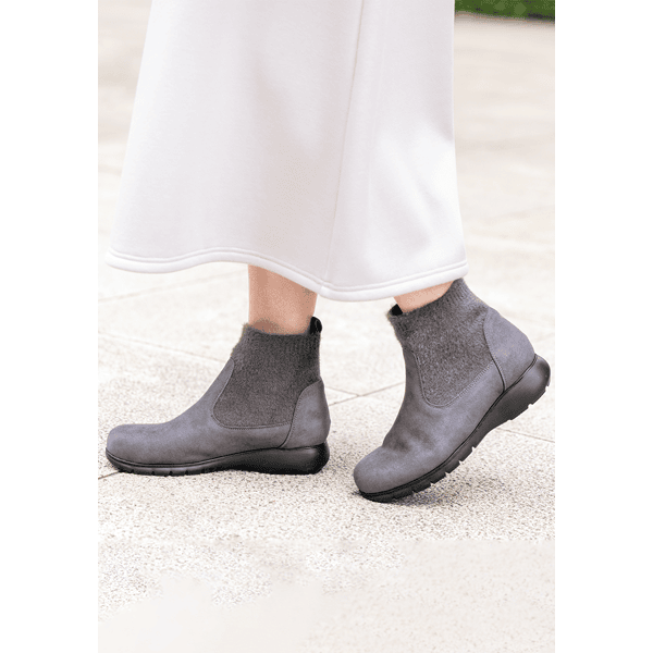 はき口がニットで広げやすく、脱ぎ履きしやすいトレンドのソックス付きブーツ。とにかく軽くて履き心地抜群のデイリーシューズです。