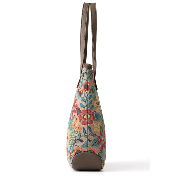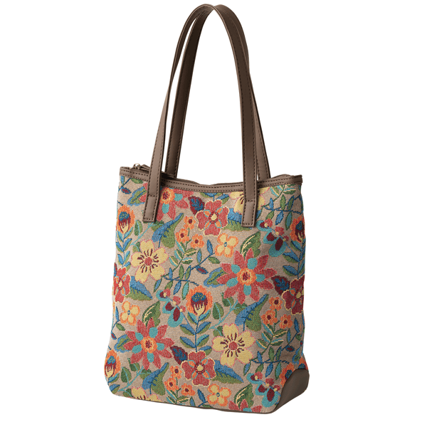 選べる色・柄が楽しい♪座った時にひざの上に収まるジャストサイズで、マチがしっかりあるので普段の荷物を収納しやすい肩掛けトートです。