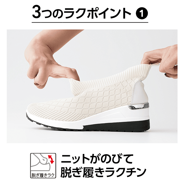(1)ニットで足なじみよく脱ぎ履きしやすい