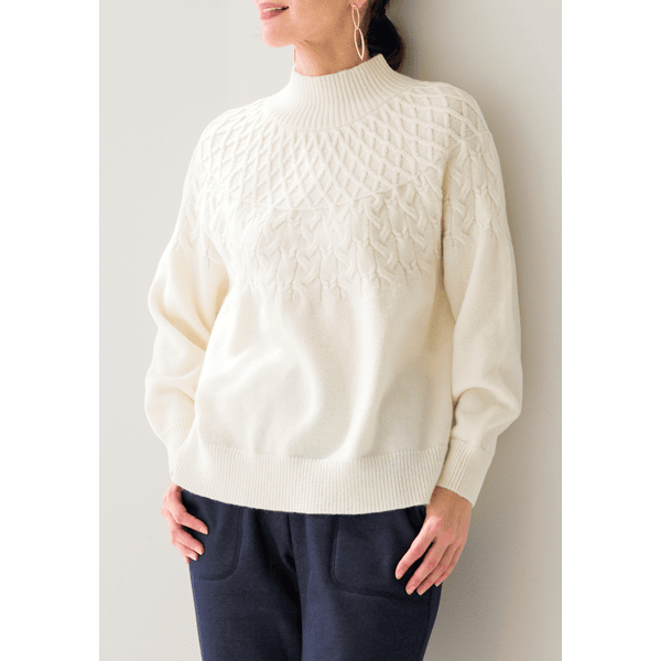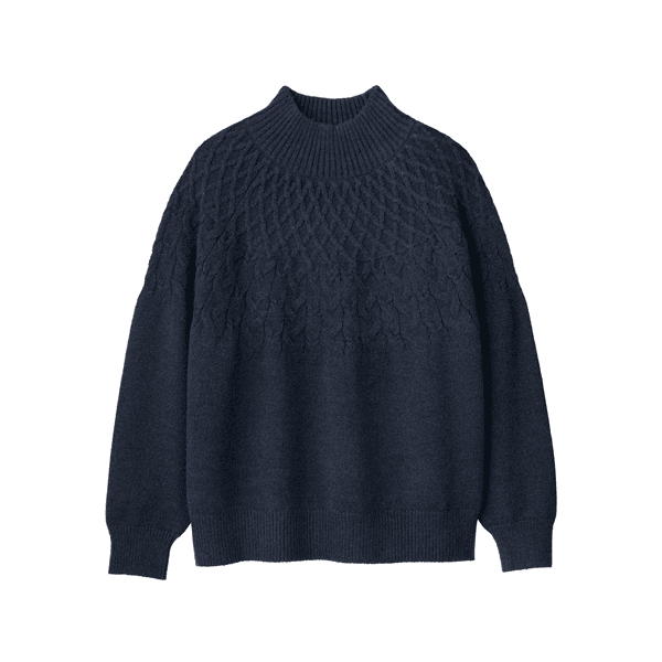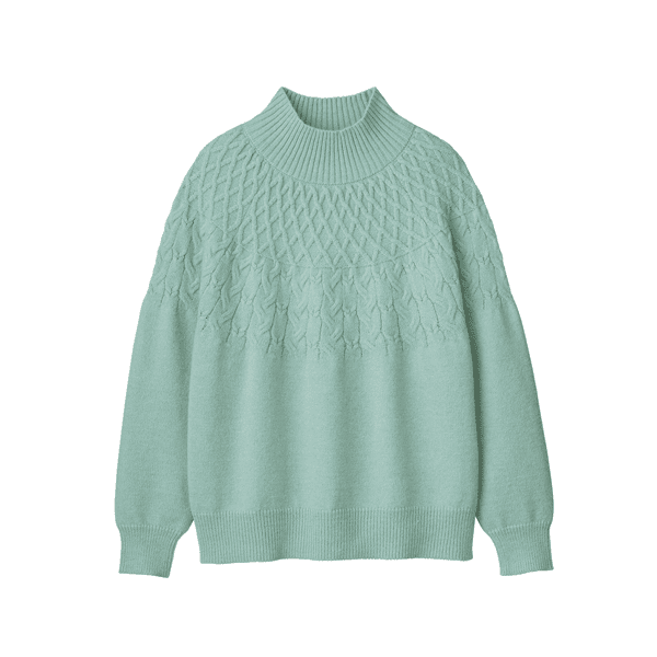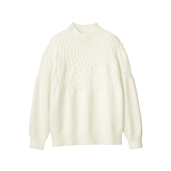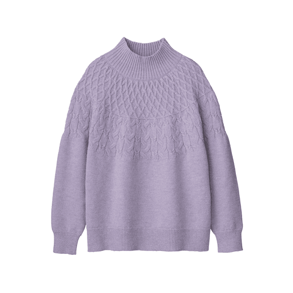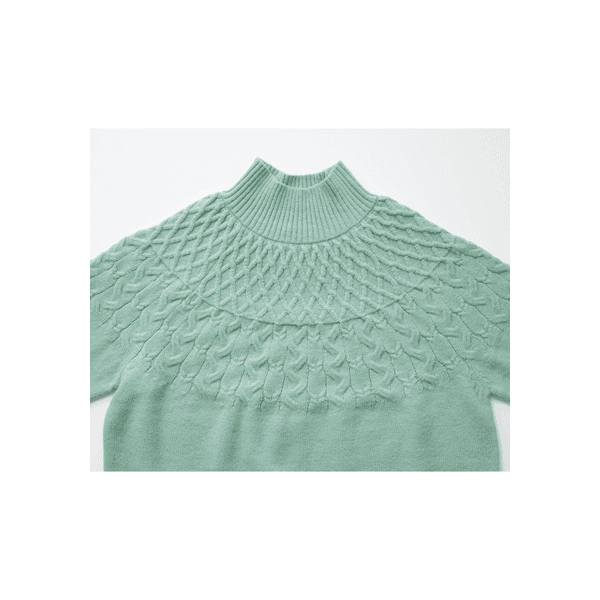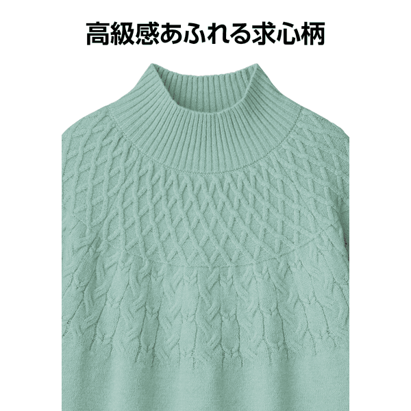 求心編み・ケーブルハイネックニット