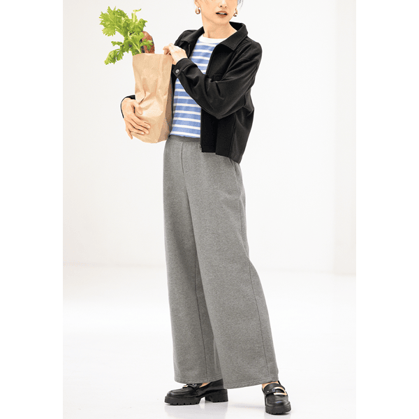 商品番号:15210のイージーケア・カットジョーゼットパンツと同素材で、横にストレッチがあります。裏地がないので、軽く、シワにもなりにくそうな生地です。身丈も短めのデザインなので、脚長効果が期待できそうです。身幅・袖まわりにゆとりがありますので、スッキリ目をお好みなら、ワンサイズ下を選んでも良さそうです。