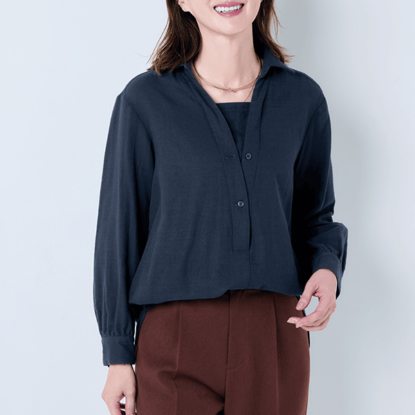 やさしい着心地で大人の肌に寄り添う綿100%のスキッパーシャツ