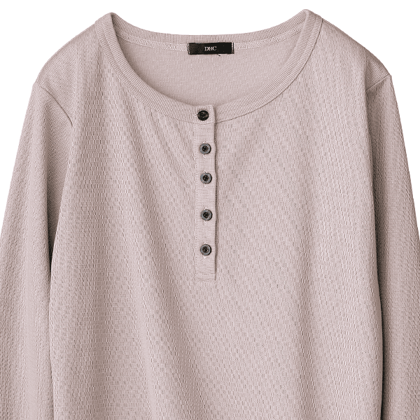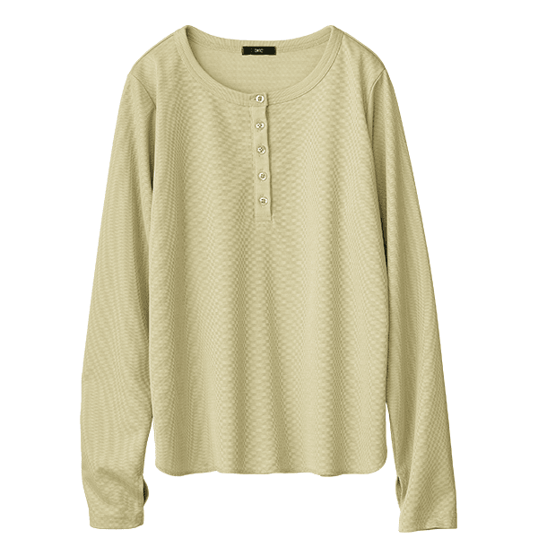 なめらかな肌ざわりが人気のオーガニックアルガンオイル配合シリーズから、肌トラブルの時季に着たくなるカットソーが登場。オイルが配合され、しっとりと気持ちいい生地は、DHCにしかないオリジナルです。生地の表面には凹凸があり、光を受けて上品な光沢感に。シワになりにくい特長もあるため、長く愛用できますよ。