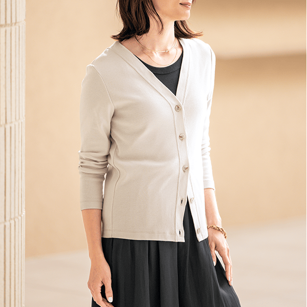 上質なオーガニックコットン100%!デコルテすっきりのVネックカーデ