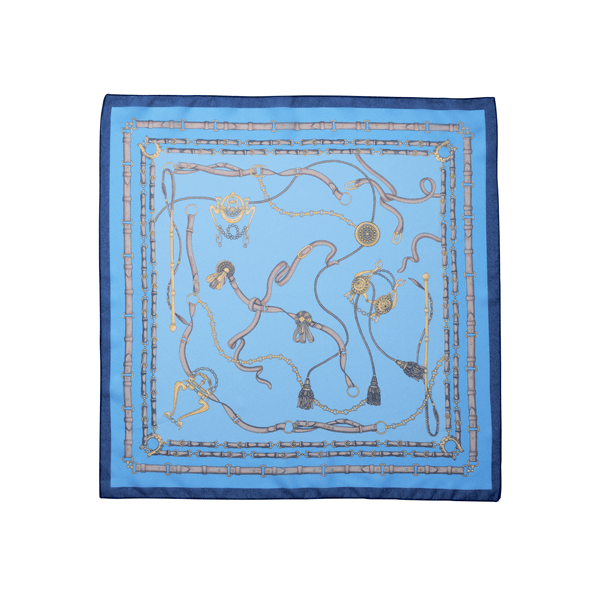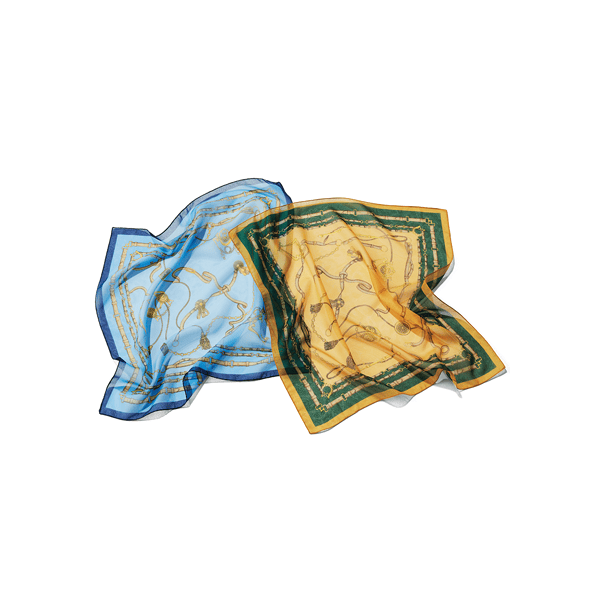 イタリア北部のコモ地区から華やかなプリントのオリジナルミニスカーフが届きました。ネックレスの代わりに首元に巻ける上品なチェーン&ベルト柄。やわらかい素材で巻きやすく、コンパクトサイズでおおげさになりません。