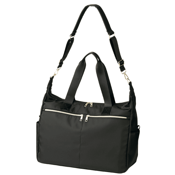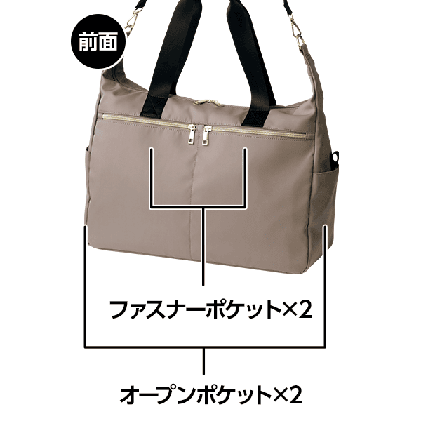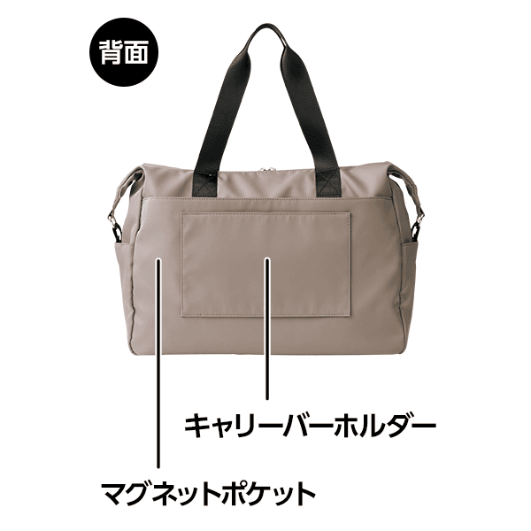 - 仕様/開閉:ダブルファスナー式 ショルダー:長さ調節可・取り外し可 前面:ファスナーポケット×2 中面:メッシュポケット×2・オープンポケット・ファスナーポケット・キーフック 背面:マグネットポケット・キャリーバーホルダー 脇:オープンポケット×2