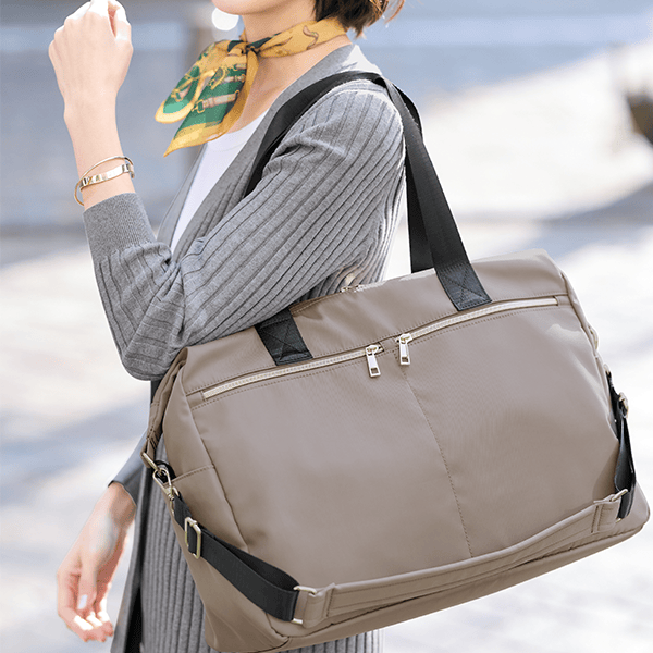 快適な旅に欠かせないバッグは、軽さと機能性が最優先ですよね。便利なポケットや使いやすい仕様にこだわりながら、シンプルな色とデザインで服装も選びません。機内持ち込み可※のボストンバッグは1~2泊分の荷物が入る大容量で、ショルダー使いもできる2WAYタイプです。