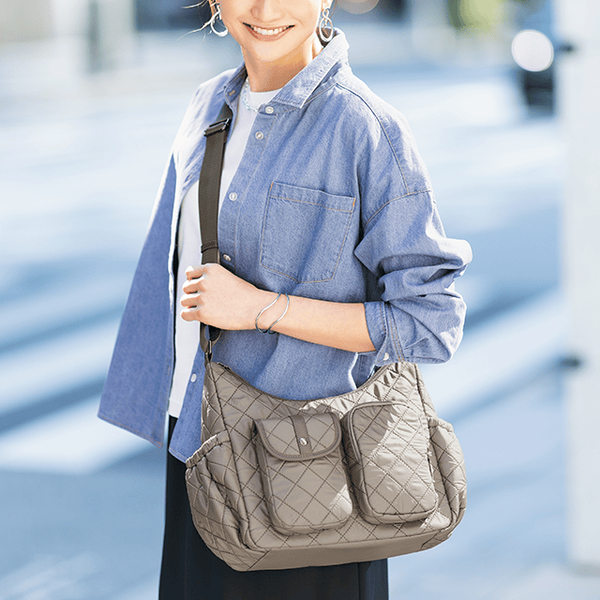DHCで超人気の10ポケットシリーズからショルダーも登場!お出かけ先でのことを考えると、細々とした荷物が増えてしまいますよね。このシリーズは、そんな荷物が迷子にならないように作られた、10個のこだわりポケットが魅力のバッグです。