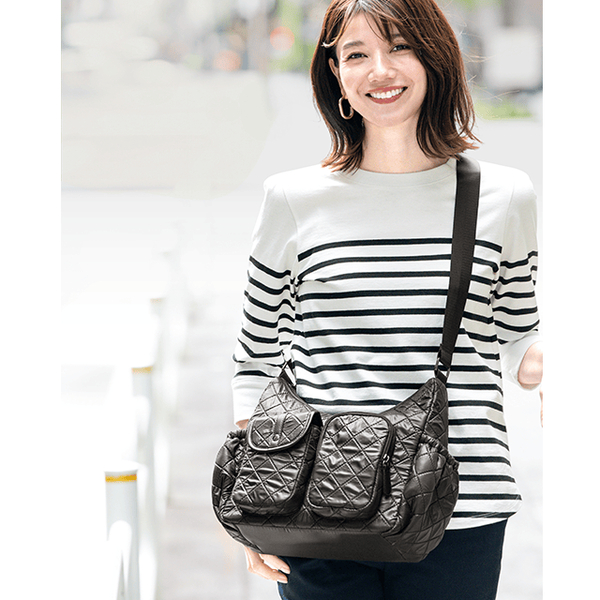 アウトドア製品でも使用される「リップストップ」という生地を採用。強度のある糸を格子状に織り込み、極薄なのに丈夫でしっかり と しています。ダイヤ柄でキルティング加工をほどこし、カジュアル感とおしゃれさを融合させました。JANコード:4511413450338