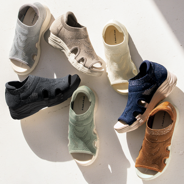 厚底ソールで美脚見え♪ムレにくくスポッとラク履きできる涼やかシューズ