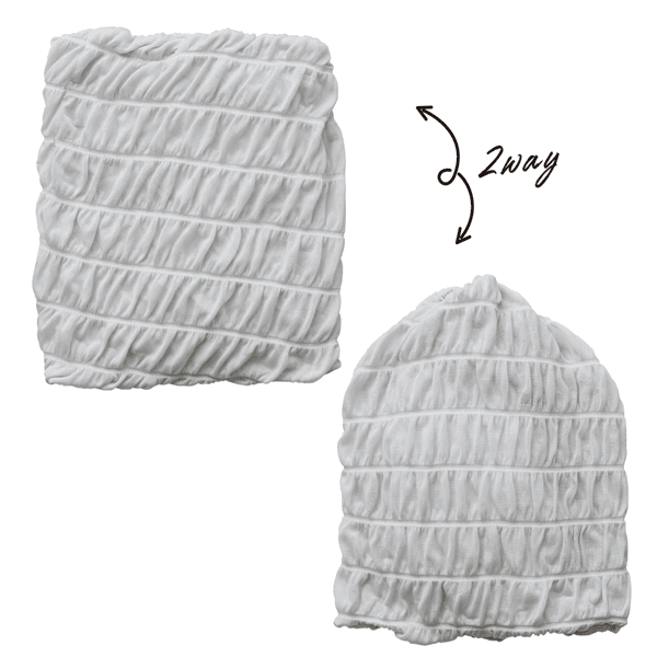 ひんやりと心地いいから熱中症対策で便利に使えます。くしゅくしゅしてもOKで、日焼け対策やおうち帽子としても活躍します。