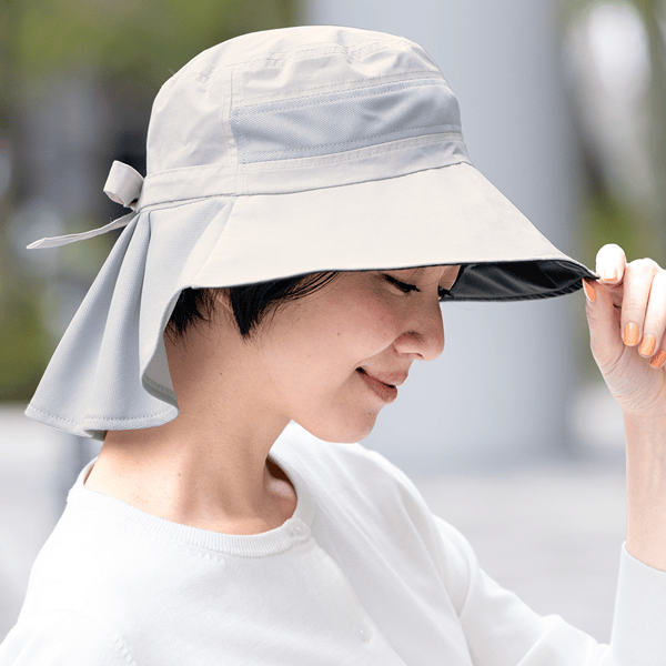 前つば裏に遮光シート付き!360度UVケアしながらメッシュで涼しいハット