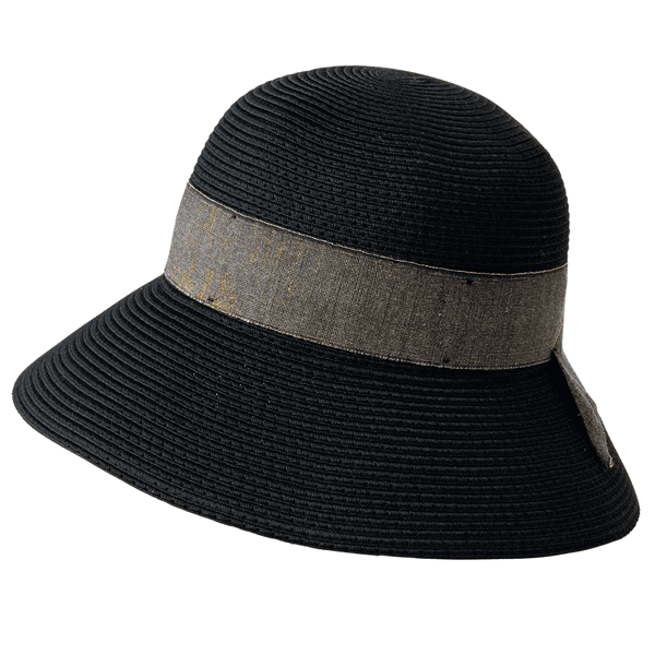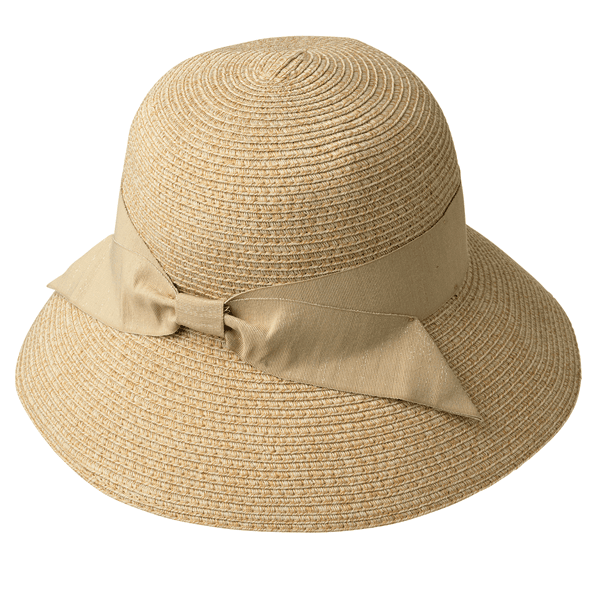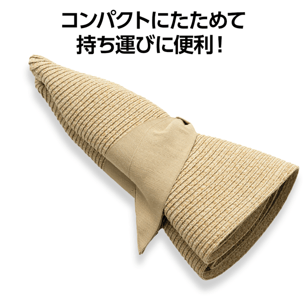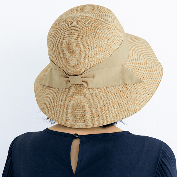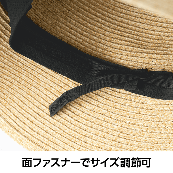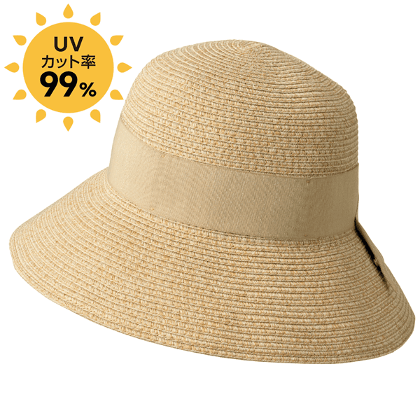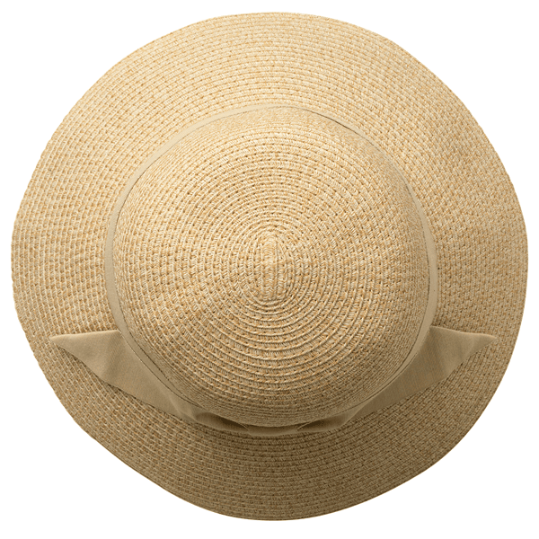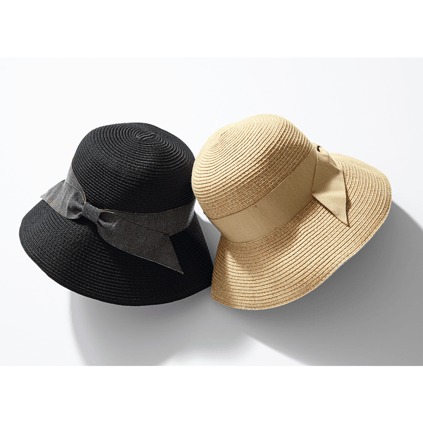 ブレード素材で風通しがよく、つば広でしっかりUVカットできる天然風ハット。コンパクトにたためるので持ち運びにも便利です。
