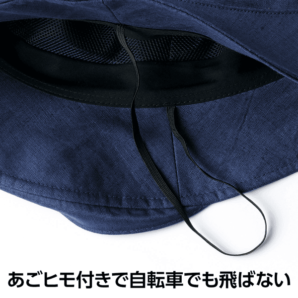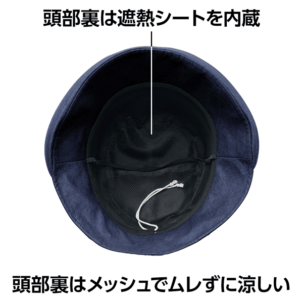 頭部裏に遮熱シートを内蔵し、日差しも熱もカットする猛暑対策ハット。頭部裏は通気性のよいメッシュ素材でムレずに涼しい仕様。目深にすぽっとかぶれるエスカルゴ型ハットです。