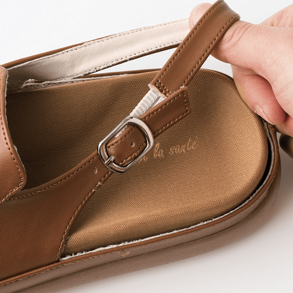 - 仕様/かかと:ゴム・バックル付きストラップ(ホールで調節可) つま先・土踏まず:ミゾ入りクッションインソール(取り外し不可) 底材の製法:セメント式