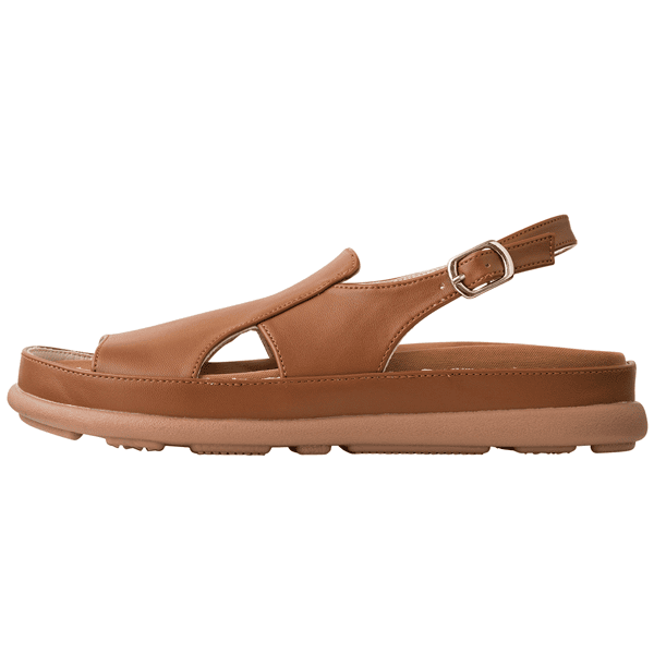 足長:23.5cm/ワイズ:EE/試着サイズ:24cm/特徴:やや幅広・甲高- 履いた瞬間からインソールのもちっと感を感じて、インソールの凹凸が指裏にフィットします。ゴム入りのストラップなので、バックルを外さなくても着用できるため、ズボラな私には嬉しいです。足幅はゆったりしているので当たりを感じにくいです。