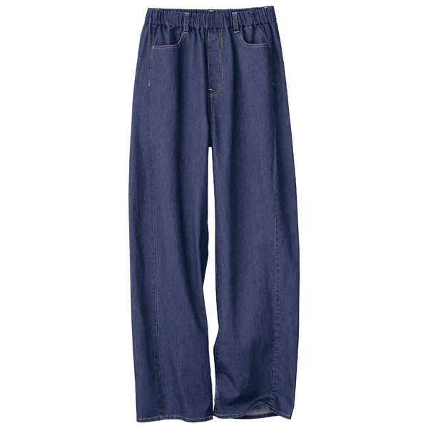 デニムながらも綿100%のやわらかい肌触りのパンツです。ワイドシルエットでバランスよく着こなしやすいので、デイリーにとても適しています。