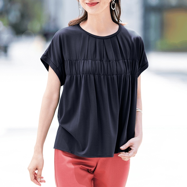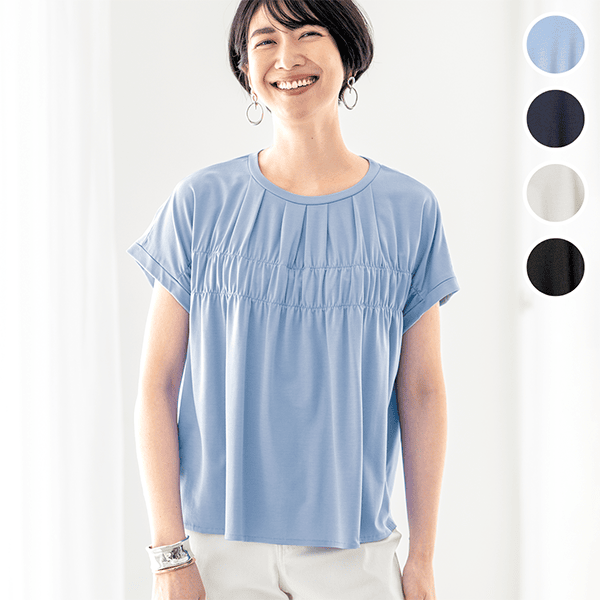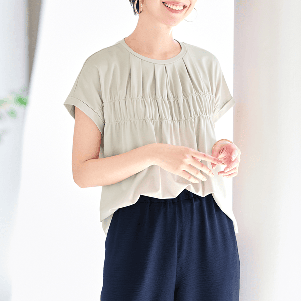 着心地ラクなギャザーカットソー(接触冷感)