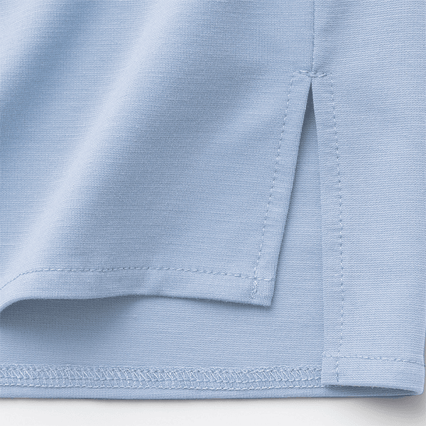 ツヤ感のあるきれいな表面感で落ち感のある薄手ポンチ素材。接触冷感機能付き。